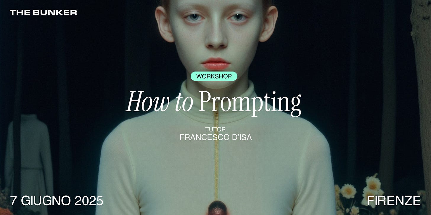 Abbiamo infatti deciso di organizzare un workshop sul prompting — l’arte, sempre più centrale, di dialogare con le intelligenze artificiali per generare immagini — perché riteniamo che sia una delle competenze richieste dal presente e sta a noi costruirne le pratiche di utilizzo.